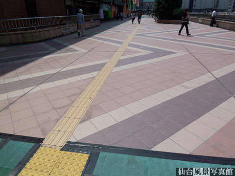 仙台駅前のペデストリアンデッキでは、タイルの張替えが進んでいます。