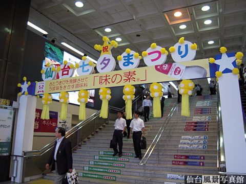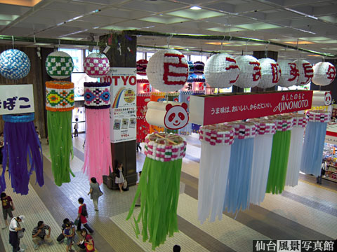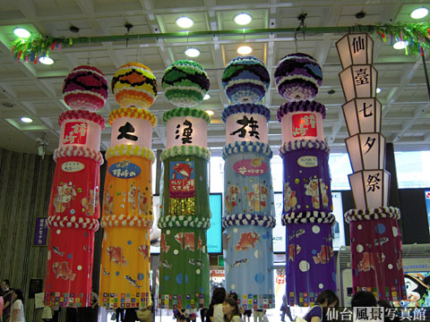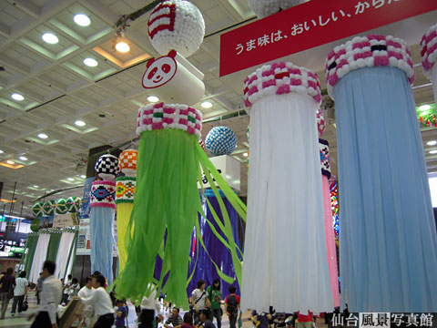 それに先立って、仙台駅に七夕の吹流しがお目見えしました。