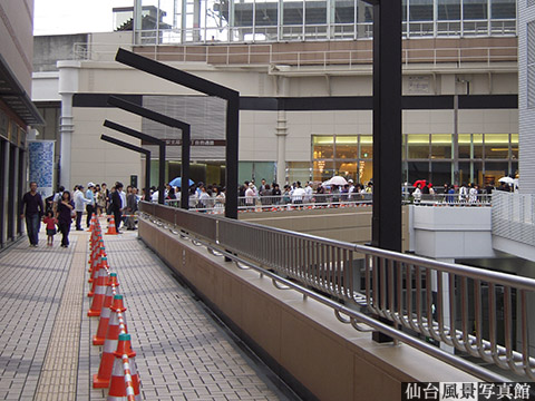 列は一旦入り口を通り過ぎて、パルコとエスパル2の間の新しいデッキに向かって行きます。
