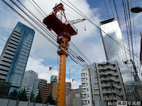 仙台中央広瀬通ビルのクレーンを、谷風通から撮影。
