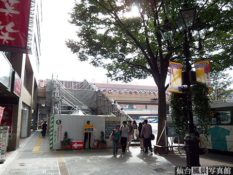 現在、仙台駅西口のペデストリアンデッキでは、再整備が進められています。