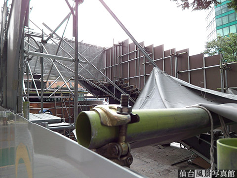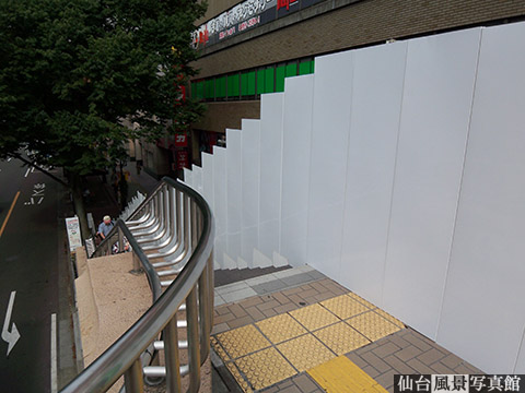 さくら野百貨店前の階段下には、地下道入り口があり、シートや柵で保護されていました。